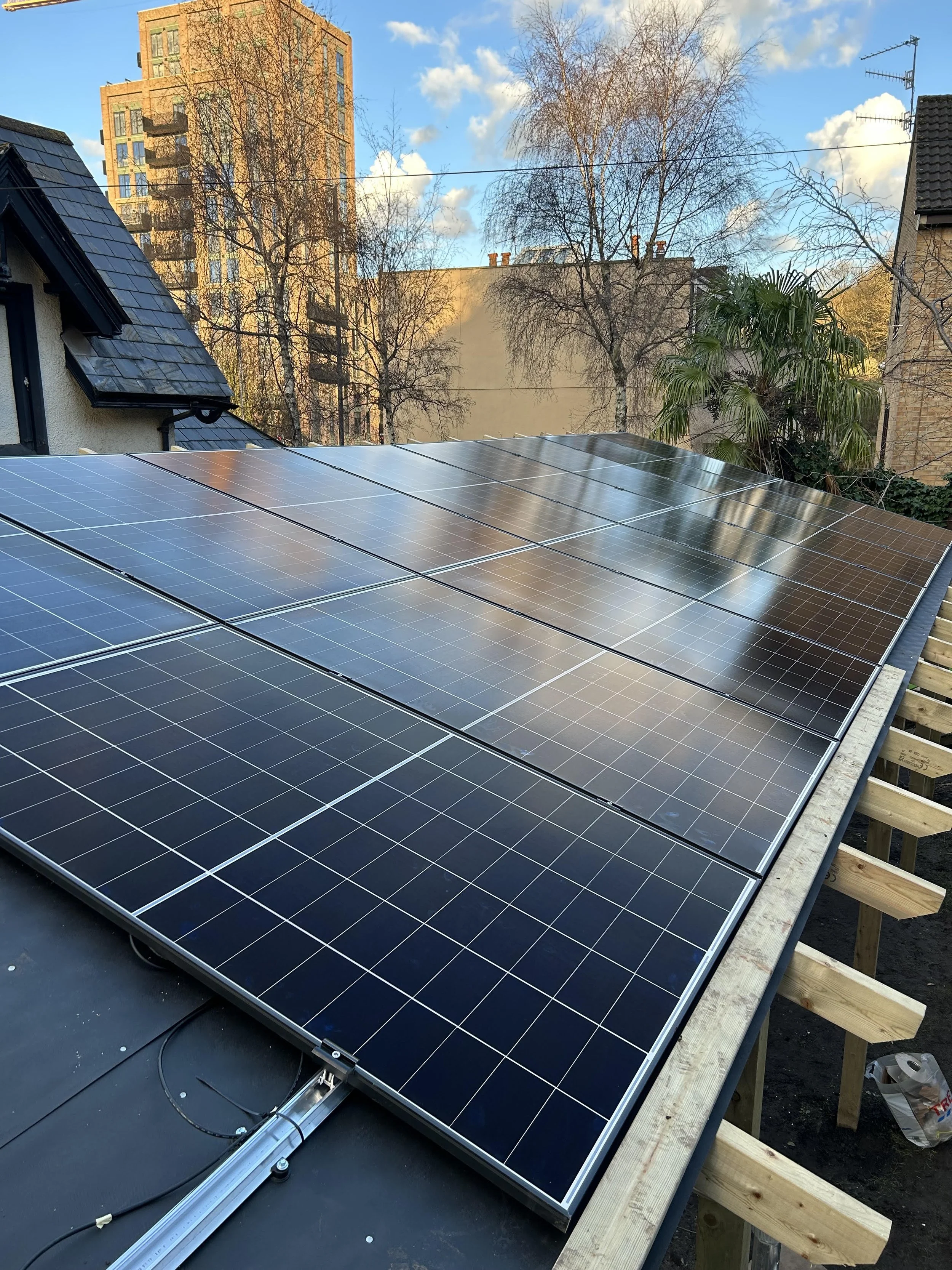 Because the pub is a listed building, putting panels on the main roof wasn't an option. Instead, we designed and built a brand new pergola structure in the back garden and installed a SolarEdge system with around 20 panels and battery storage. SolarEdge uses optimiser technology, meaning each panel works independently. If one corner of one panel is in shade, every other panel keeps generating at full capacity. For a garden installation with shading from different angles throughout the day, that makes a difference to overall output.